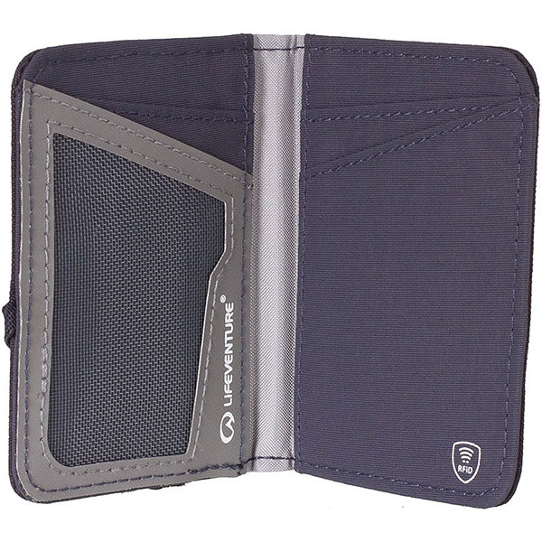 Lifeventure RFID Card Wallet – простий компактний і акуратний гаманець в мінімалістичному виконанні. Виконаний з зносостійкої нейлонової тканини з поліуретановим покриттям. Поліефірна тканина з покриттям із нікелю і міді знижує ризик крадіжки інформації зчитувачами радіочастотної ідентифікації RFiD.